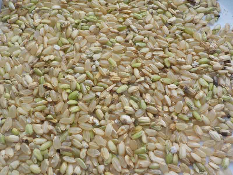 白や緑の未熟米、小粒なお米が多くなります。倒れてしまった稲は日当たりが悪くなってあまり登熟出来なくなるので品質が悪くなります。今年はこのお米が異常に多かったです。