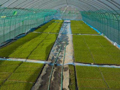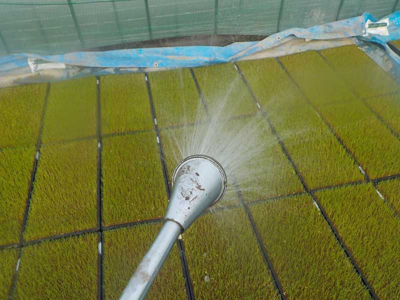 育苗期間中で心配になるのが気温と水です。暑すぎても寒すぎてもダメ、水のやりすぎ、乾きすぎもダメで、稲の栽培の中で苗作りが一番難しいと感じています。人間や動物の赤ちゃんは不快に感じると泣いて知らせてくれるのですが、植物はそれが無いので、こちらがずっと見守ってやる必要があります。特に4月は一日の温度の変化が大きいので、苗がヨレていないか、気温が高すぎないか心配になって一日に何度も苗を見に来ます。
