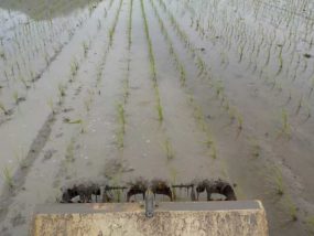 稲作では、ほぼ必ず田植え時に除草剤を使用して雑草が生えないようにします。除草剤を使用しない田んぼは当然草が生えてくるので、色々と対策をする必要があります。高山農園では主に水田内の機械除草で対応をしています。