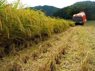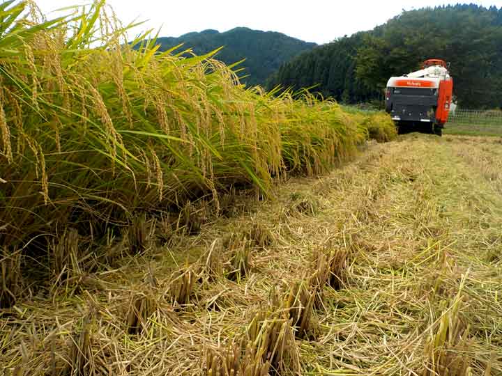 機械が入れない田んぼの隅の部分をちょこっと鎌で刈り取るくらいです。あとはコンバインの籾がいっぱいになるのを待って、籾をトラックに移し替えて乾燥機のある施設に運ぶだけです。これが現在の稲刈り作業です。