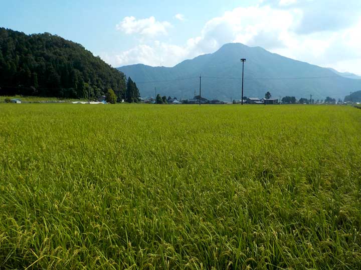 6月12日に植えた無農薬栽培のコシヒカリです。まだ青々としていますが、これから秋の柔らかい日差しを受けてゆっくりと成熟していきます。