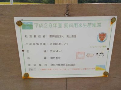 今日の稲刈りはいつもと違って飼料米の「夢あおば」と言う品種を収穫します。栽培方法はとにかく「量」を採るための窒素肥料重視の肥料設計です。こういった栽培方法で作ったお米は私たちが食べてもボソボソして美味しくないです。