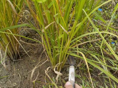 稲刈りのコツは、田んぼを良く乾かしておくことです。これができていないとコンバインが泥にはまったり、稲が株ごと抜けて機械に詰まったりと、とにかく時間がかかってしまいます。