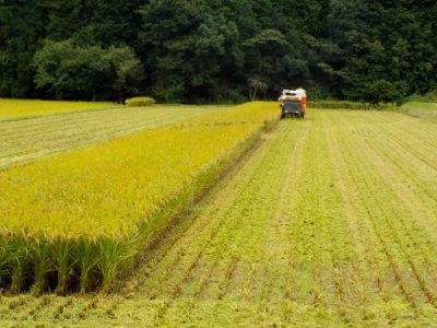 今日は飼料米の稲刈りです。飼料米とは、私たちの主食用のお米でも加工品用のお米でもなく、家畜が食べるお米です。お米が変化して、いづれ肉や卵、牛乳などになって私たちの食卓に並びます。