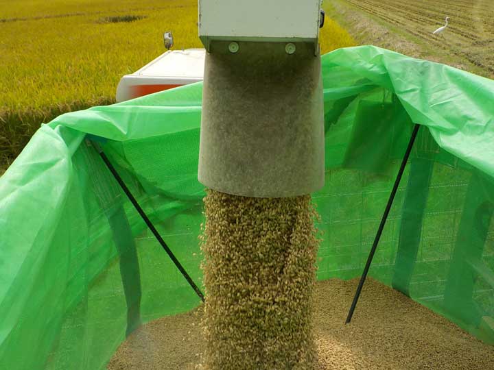 コンバインのタンクがいっぱいになったら、フレコンに籾を入れ替えてカントリーエレベーターへ運搬します。自分のところで乾燥させなくてよいので、乾燥調製を担当している自分としてはとっても楽です。