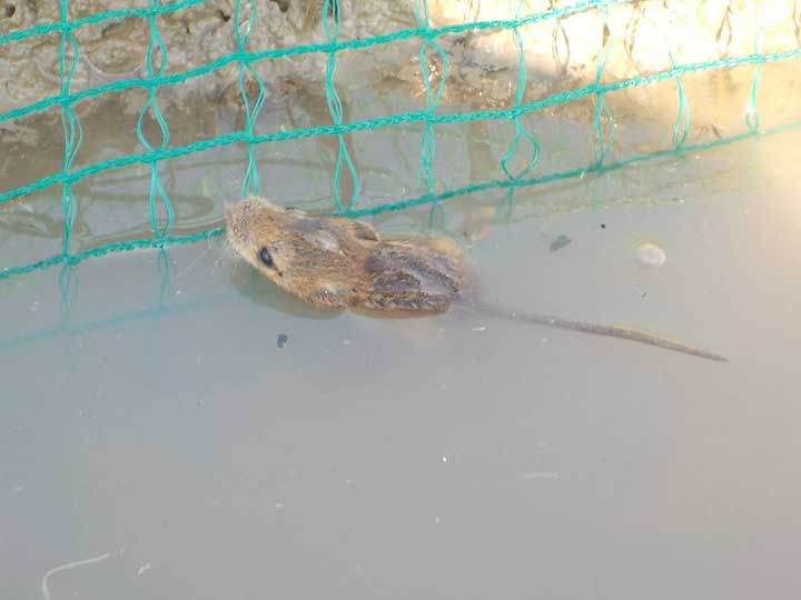 泳ぐネズミ。稲の苗にとってはものすごい害獣なのでこいつらを食べてくれると助かります。