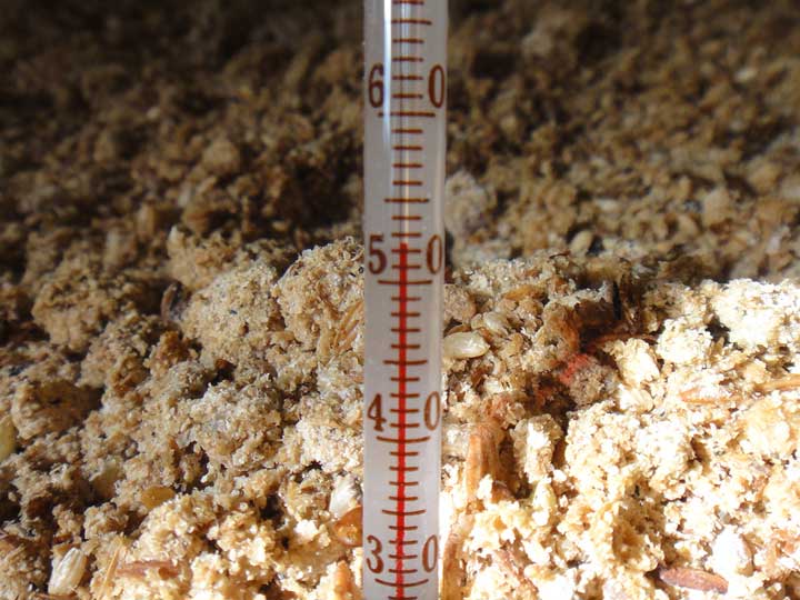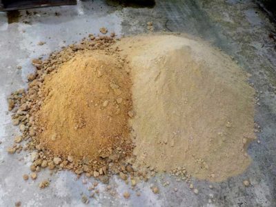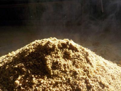 好気性発酵なので温度もどんどん上がり、この寒い時期でも約55度ぐらいになります。毎日毎日少しづつ米ぬかと水を足していって、混ぜるのがたいへんになるくらいの量になったら広げて乾かして保管しておきます。