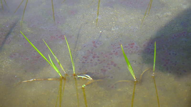 田植え時に肥料をまくと、数日で田んぼの土の表面が真っ赤になります。よく見るとたくさんのイトミミズが揺らいでいます。