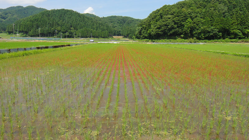 この田んぼは田植え時の抑草資材だけで雑草がほとんど生えなかった田んぼです。田んぼにも個性があり、同じ方法でも結果は様々です。