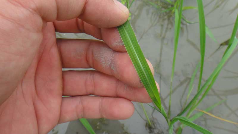 こちらはヒエの葉。真ん中にスッと白い線があるのが目印。あと若干ですが葉が細いです。