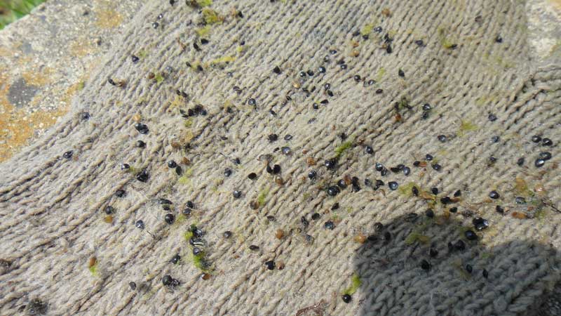 軍手で泥の中をひと掻きすると小さな種がたくさんくっついてきます。これは水田雑草の種で、発芽前のものがたくさん泥の中にあります。