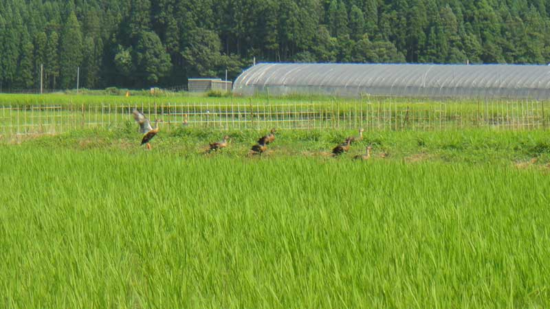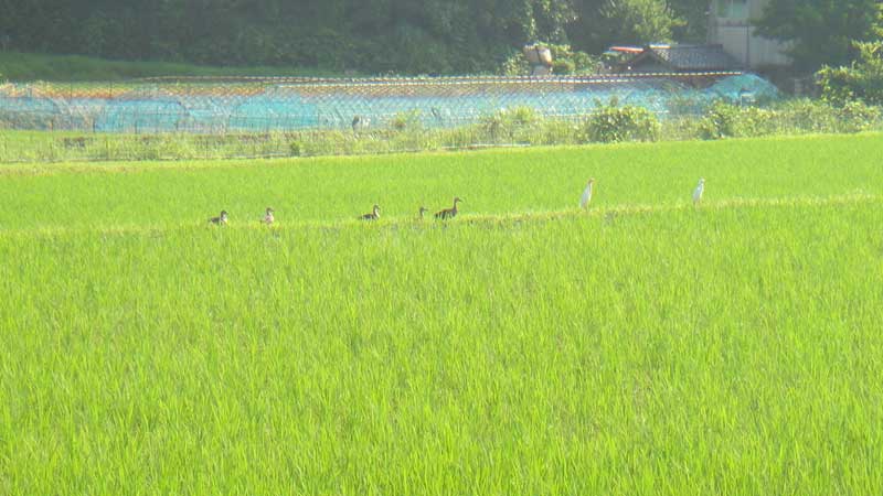 相変わらずサギのひなは無農薬の田んぼに大勢でやってきますが、