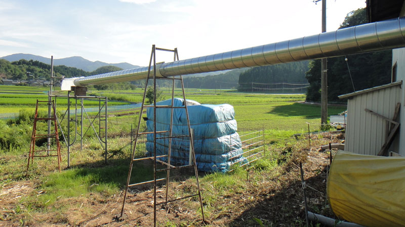 外の乾燥機の排気ダクトと籾殻の排出ダクトも準備完了です。
