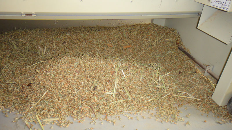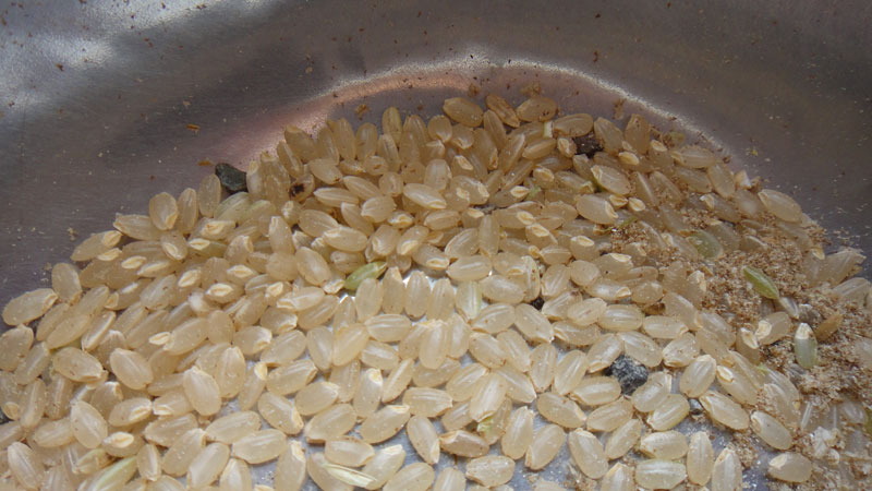カメムシ防除の農薬散布をしていないお米でも、選別機を通すとこれぐらいきれいになります。
