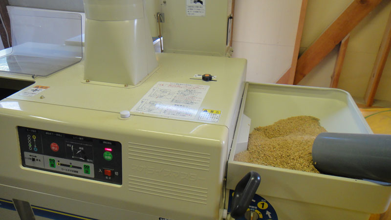 次に籾すり機で籾殻をとって玄米にします。この状態でも精米すれば食べることはできますが、品質を上げるためにさらに調製を行います。