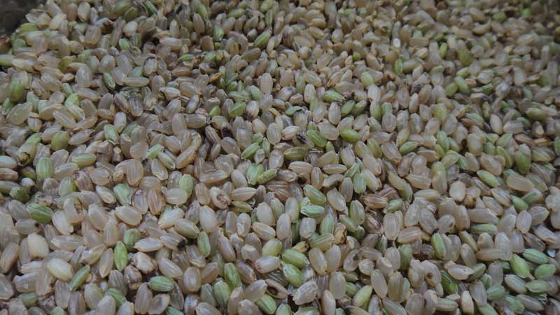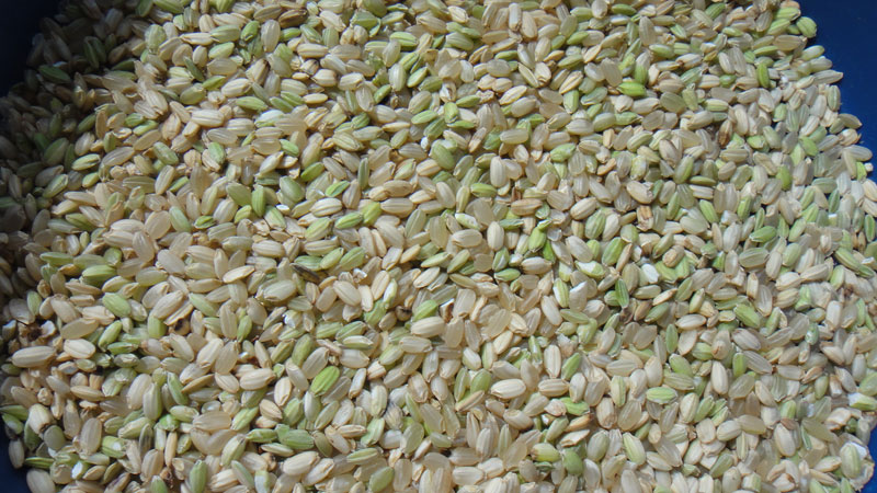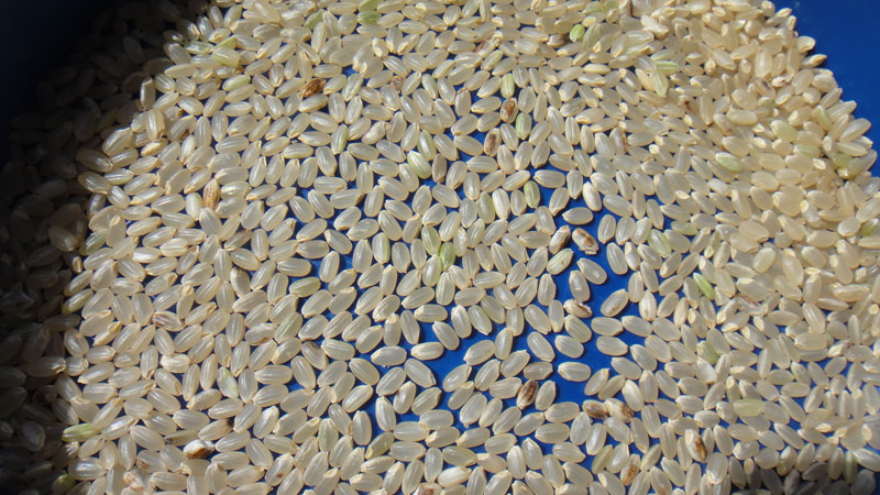 今年の玄米で特に多かったのがお米が全体的に黒っぽくなる着色米です。夏の気温が低かったためか青米も若干多いように感じました。