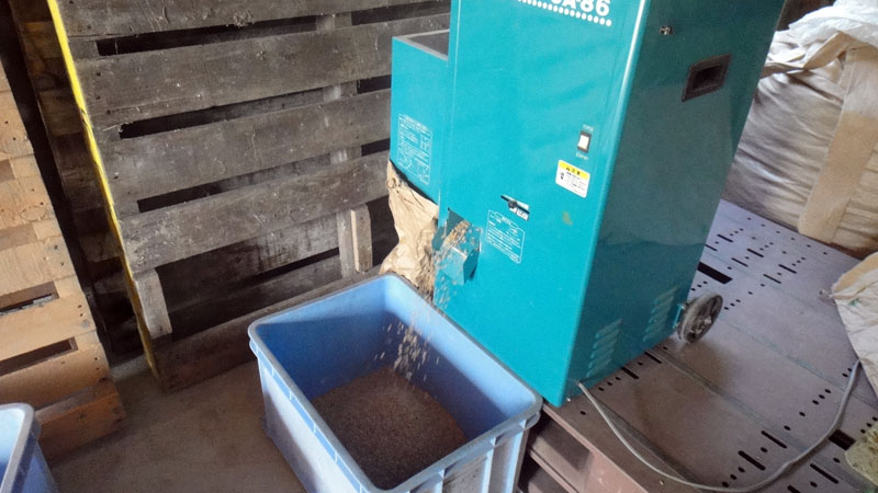 これは自家採種した種籾で、来年度の栽培に使用します。機械でゴミや籾のヒゲを取り除いてきれいな状態にしています。