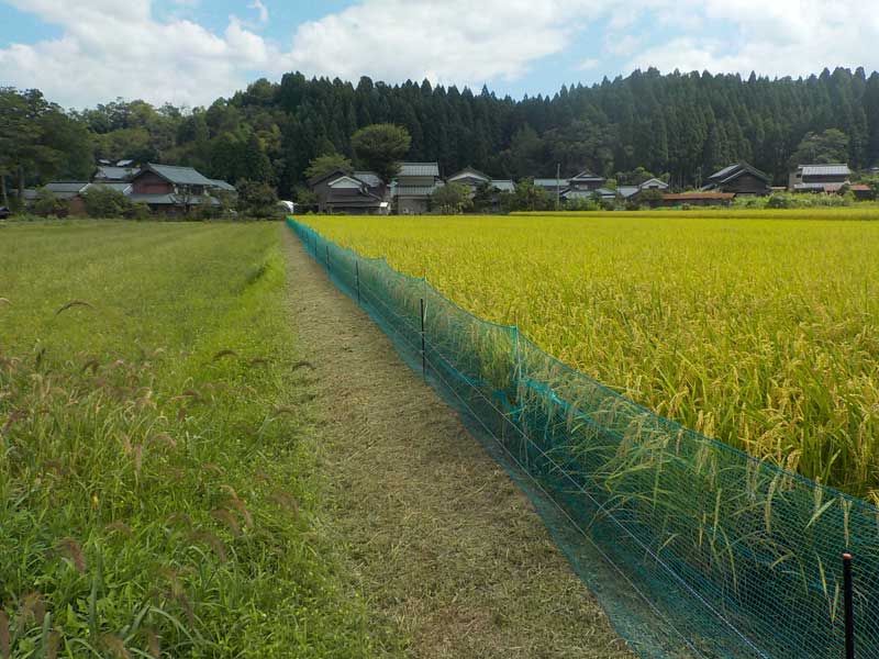 防獣ネット+電気柵というのがイノシシ対策の基本です。どちらか片方だけでは簡単に突破されてしまいます。手間はかかりますが、とりあえずやっておけば安心感が違います。