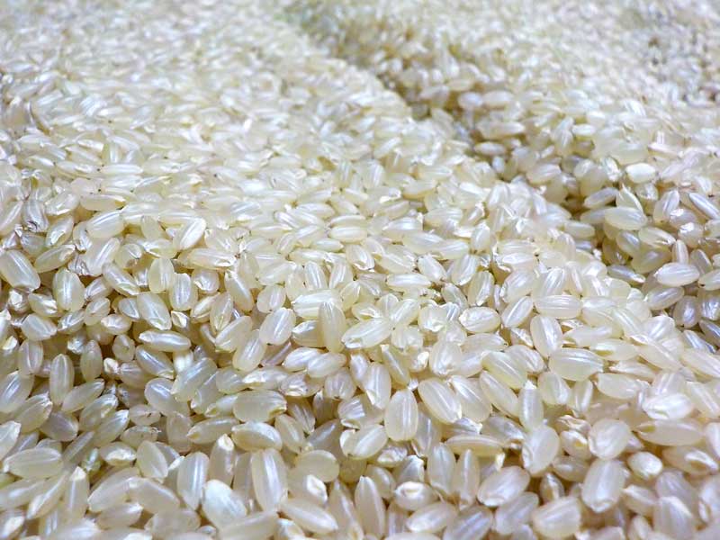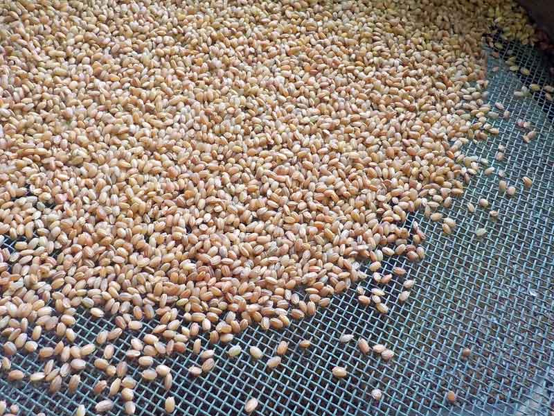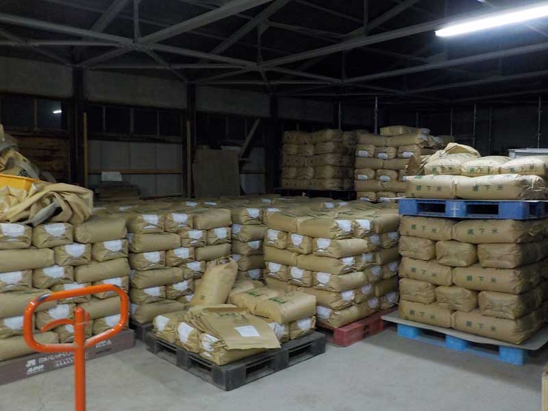 籾すり後の玄米。今年のお米は割ときれいでした。ちょっと気になったのは、モチ系の品種で収穫前に発芽してしまったものがあったことです。胚芽の部分が黒くなってしまったものがあり、色彩選別がたいへんでした。