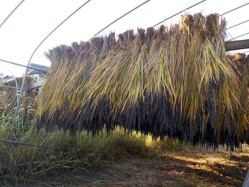 刈り取った稲は、はさ掛けにして天日で乾燥させます。いつも使っている籾乾燥機なら一晩で完了しますが、天日干しだと1週間以上かかります。